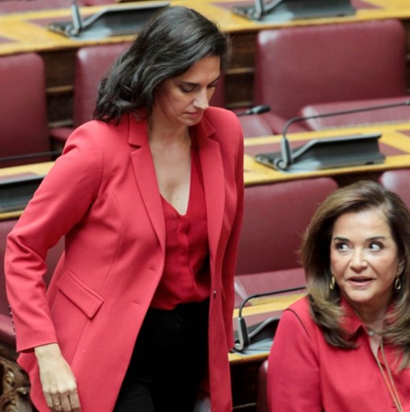 Αν μπορούσε να μιλήσει θα το έκανε η Ντόρα Μπακογιάννη βλέποντας το εντυπωσιακό ντεκολτέ της Νόνης Δούνια στα έδρανα της Βουλής.