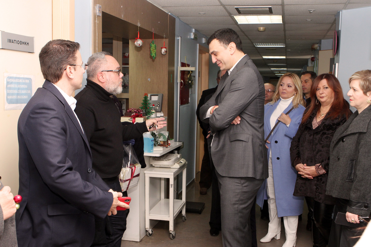 Κοντά σε άρρωστα παιδάκια, αλλά και στους εργαζόμενους του ΕΚΑΒ Θεσσαλονίκης βρέθηκε σήμερα πρώτη μέρα του χρόνου και ανήμερα της ονομαστικής του γιορτής ο υπουργός Υγείας, Βασίλης Κικίλιας.