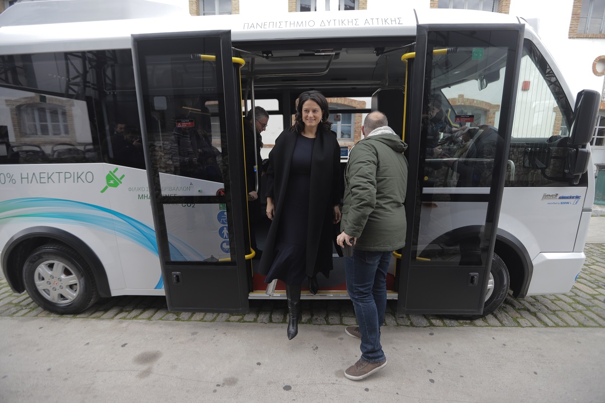 Η Νίκη Κεραμέως εγκαινίασε το νέο ηλεκτρικό λεωφορείο, που δημιούργησε το Πανεπιστήμιο Δυτικής Αττικής, κάνοντας μια μικρή βόλτα στο Γκάζι, στο πλαίσιο του Eco-Fest 2020, μιας διοργάνωσης αφιερωμένης στις πράσινες πόλεις, τη βιώσιμη ανάπτυξη και την ηλεκτροκίνηση, στην «Τεχνόπολη» στο Γκάζι.