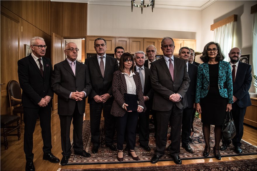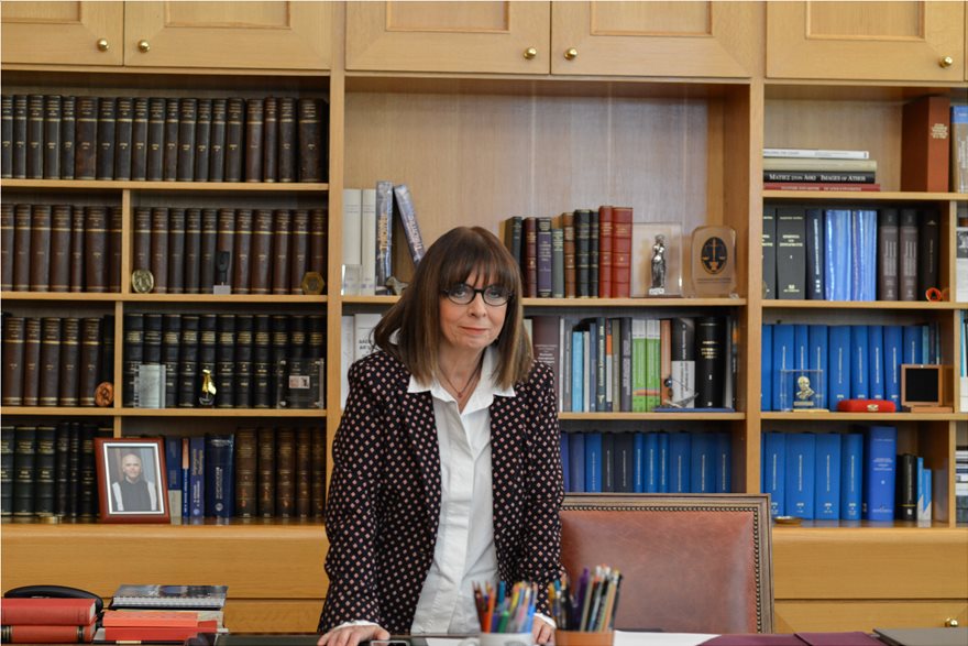 «Σας ευχαριστώ θερμά για το μήνυμα και τα ευγενικά λόγια. Παρακαλώ να μεταβιβάσετε στη Βουλή τις ευχαριστίες μου και τη διαβεβαίωση ότι έχω πλήρη συνείδηση του βάρους που αναλαμβάνω. Σε συνεργασία με τη Βουλή, την κυβέρνηση και την αντιπολίτευση θα συνεργαστούμε για τη μεγαλύτερη δυνατή συναίνεση». Αυτά ήταν τα πρώτα λόγια της Αικατερίνης Σακελλαροπούλου. Το προεδρείο αποχώρησε, αλλά ο Πρόεδρος της Βουλής παρέμεινε, επιλέγοντας εικοσάλεπτο προσωπικό τετ α τετ μαζί με το τιμώμενο πρόσωπο της ημέρας. Όταν, κατά την αποχώρησή του, η ίδια τον συνόδευσε, απλός κόσμος και συνάδελφοι την πλησίασαν, λούζοντας την από καταιγισμό ευχών και συγχαρητηρίων.