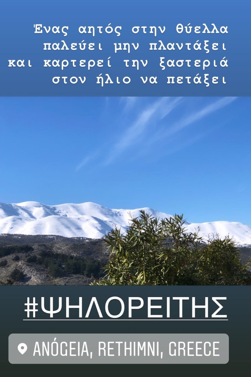 Το μεσημέρι του Σαββάτου, η Όλγα Κεφαλογιάννη δημοσίευσε στον προσωπικό της λογαριασμό στο Instagram μία φωτογραφία από την απόδρασή της στο Ρέθυμνο σχολιάζοντας:
