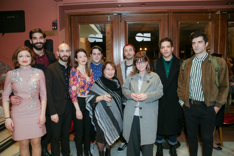 Με όλο τον θίασο μετά το τέλος της παράστασης στο μπιστρό του Εθνικού Θεάτρου στο Rex