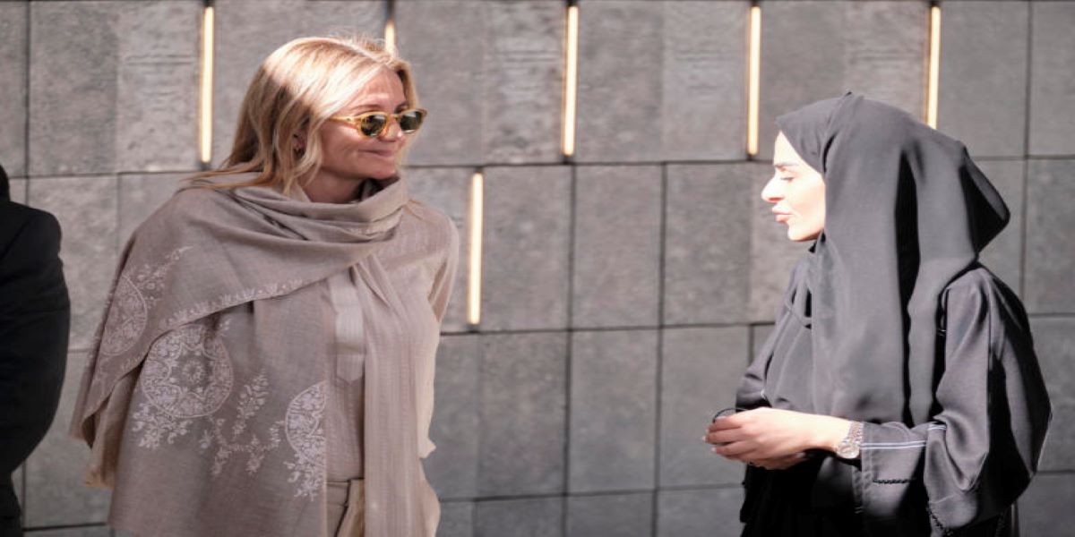 Η Μαρέβα Γκραμπόφσκι Μητσοτάκη με ένα ρούχο στα χρώματα της άμμου και χωρίς μαντήλα στο κεφάλι, αφού δεν είναι υποχρεωτική στην συγκεκριμένη χώρα, έκανε μια εντυπωσιακή εμφάνιση στο πλευρό του συζύγου της, Κυριάκου Μητσοτάκη. Ο ενδυματολογικός κώδικας στην συγκεκριμένη χώρα δεν θέλει τις γυναίκες να φορούν αποκαλυπτικά ρούχα. Θέλει οι ώμοι να καλύπτονται από ύφασμα και τα ρούχα να μην είναι ιδιαίτερα στενά.