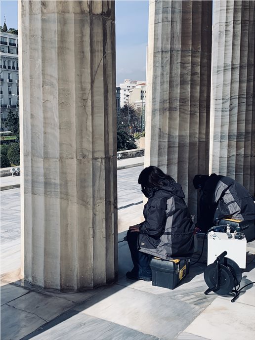 Ένα ειδικό συνεργείο εμφανίστηκε στη Βουλή, προκειμένου να καθαρίσει τα μάρμαρα που μόνο λευκά δεν ήταν.