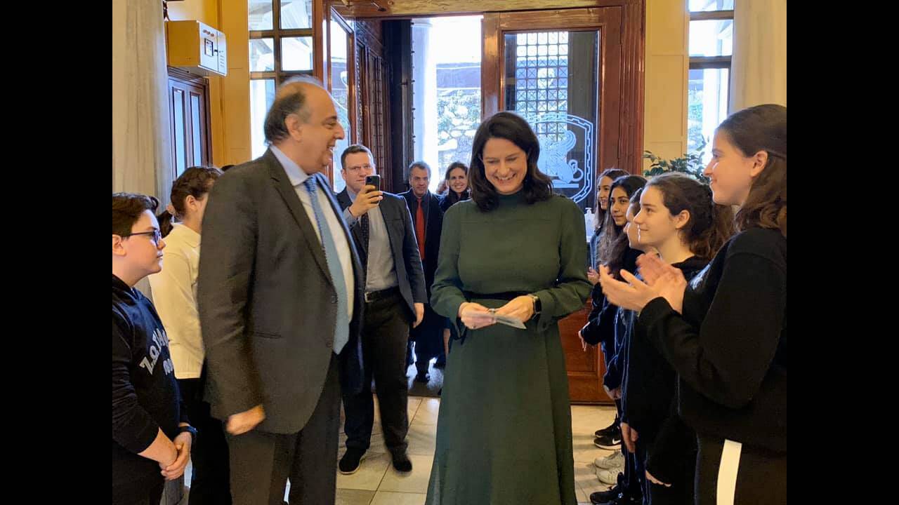 Δείτε φωτογραφίες από την υποδοχή της υπουργού Παιδείας στο Ζωγράφειο Λύκειο και τον λυκειάρχη Γιάννη Δεμιρτζόγλου: