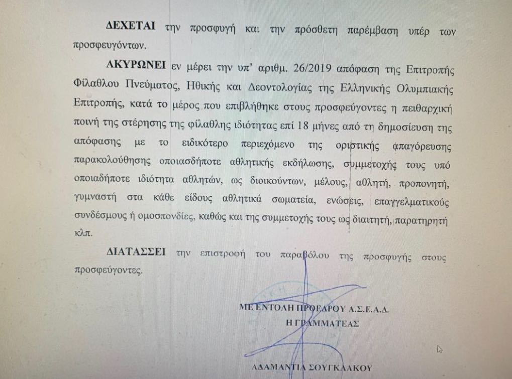 Γίνεται το ΑΣΕΑΔ να εκδίδει διατακτικό, με το οποίο να ακυρώνει εν μέρει απόφαση της Επιτροπής Φιλάθλου Πνεύματος, Ηθικής και Δεοντολογίας της ΕΟΕ και την επόμενη ημέρα να εκδίδει την απόφαση για το επίδικο ζήτημα με εξ ολοκλήρου ακύρωση;