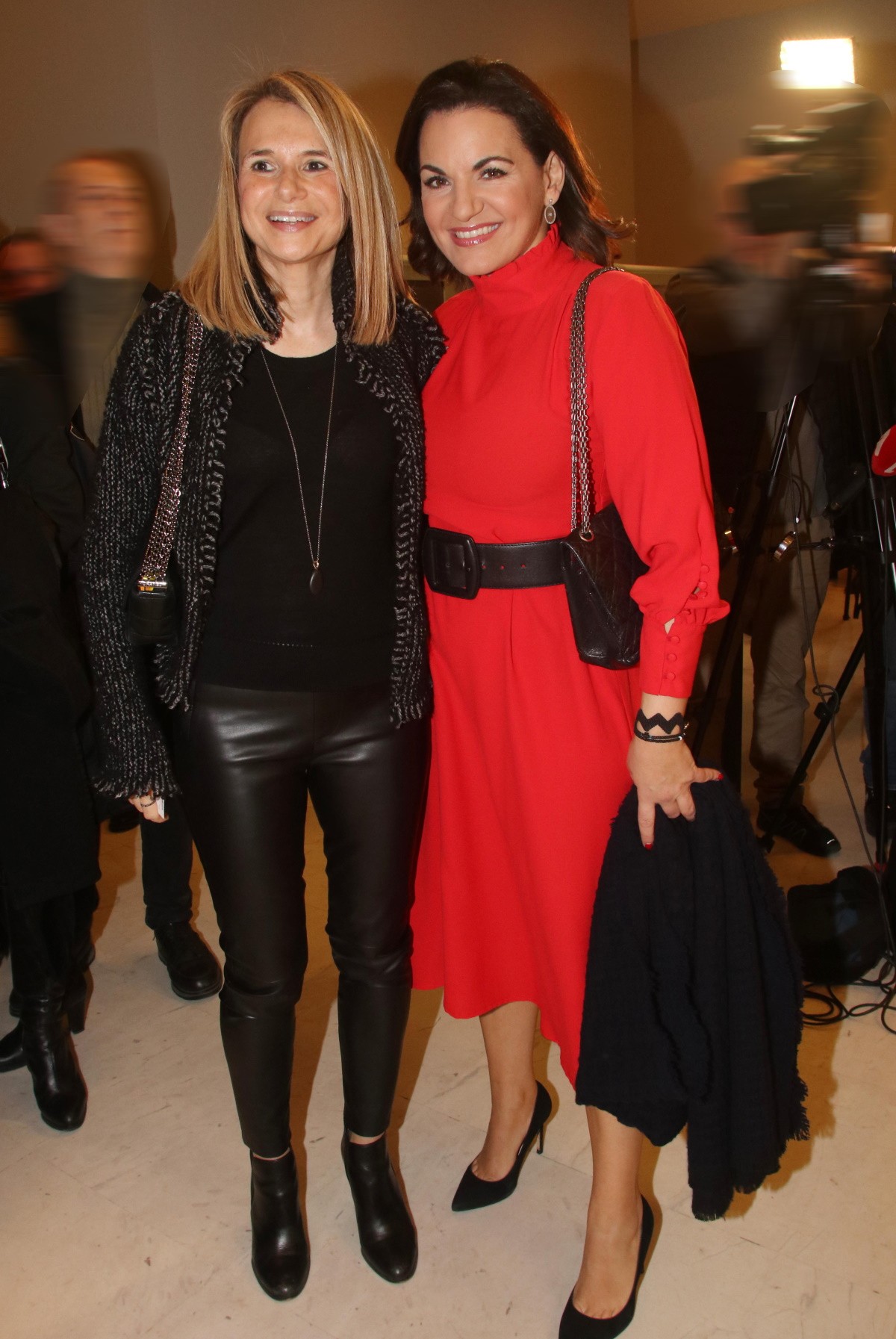 Με ένα κόκκινο midi φόρεμα, τονισμένο με μία μεγάλη μαύρη ζώνη, την είδαμε και το βράδυ της Τετάρτης στην επίσημη πρεμιέρα του Μακμπέθ στο Εθνικό Θέατρο. Αξίζει να σημειωθεί, πως η παρουσία της χθεσινή βραδιά είχε ιδιαίτερο ενδιαφέρον αφού πρόκειται για ένα έργο που έχει γράψει τη μουσική του ο Μίνως Μάτσας.