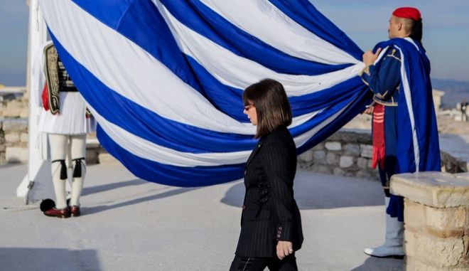 Στην τελετή έπαρσης της ελληνικής σημαίας από την Προεδρική Φρουρά, στον Ιερό Βράχο της Ακρόπολης, έδωσε το παρών η νέα Πρόεδρος της Δημοκρατίας, Κατερίνα Σακελλαροπούλου, την πρώτη Κυριακή μετά την ανάληψη των καθηκόντων της από τον απερχόμενο Πρόεδρο, Προκόπη Παυλόπουλο.
