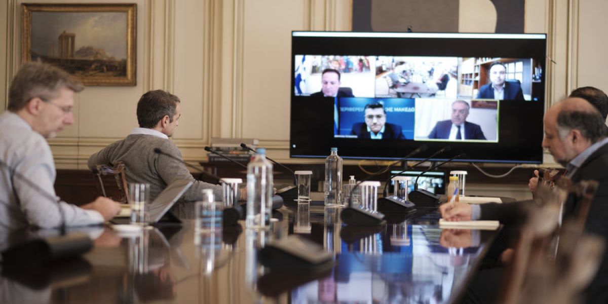 Τηλεδιάσκεψη για το πρόγραμμα «Βοήθεια στο Σπίτι» και τη στήριξη ευάλωτων πολιτών, στη διάρκεια της κρίσης που έχει προκληθεί από τον κορωνοϊό, είχε σήμερα ο Πρωθυπουργός Κυριάκος Μητσοτάκης με τον Υπουργό Εσωτερικών Τάκη Θεοδωρικάκο, τον Πρόεδρο της Ένωσης Περιφερειών Ελλάδας Απόστολο Τζιτζικώστα και τον Πρόεδρο της Κεντρικής Ένωσης Δήμων Ελλάδας, Δημήτρη Παπαστεργίου.