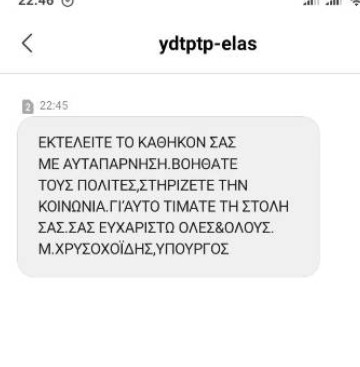 Οι αστυνομικοί έλαβαν στο κινητό τους τηλέφωνο το παρακάτω μήνυμα: