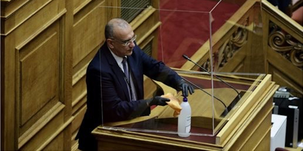 Ολα τα απαραίτητα μέτρα για την πρόληψη της εξάπλωσης του φονικού ιού υιοθετούνται και στη Βουλή, όπου οι συνεδριάσεις δεν έχουν σταματήσει. Ετσι, πάρθηκε η απόφαση να τοποθετηθεί προστατευτικό τζάμι στο βήμα της Βουλής ώστε να αυξηθούν τα μέτρα προστασίας από τον ιό.