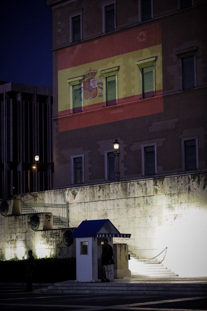 Στα χρώματα της Ισπανίας η ελληνική Βουλή ως ένδειξη αλληλεγγύης (φώτο)