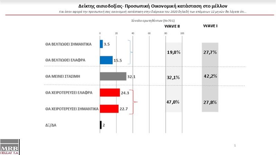 Στα αξιοσημείωτα της έρευνας είναι ότι το 45,2% των ερωτηθέντων αξιολογεί θετικά και την στάση που κρατά ο ΣΥΡΙΖΑ σε ότι αφορά την πανδημία του κορωνοϊού, ενώ το 47% θεωρεί ότι η προσωπική του οικονομική κατάσταση θα επιδεινωθεί λόγω της πανδημίας στο μέλλον.