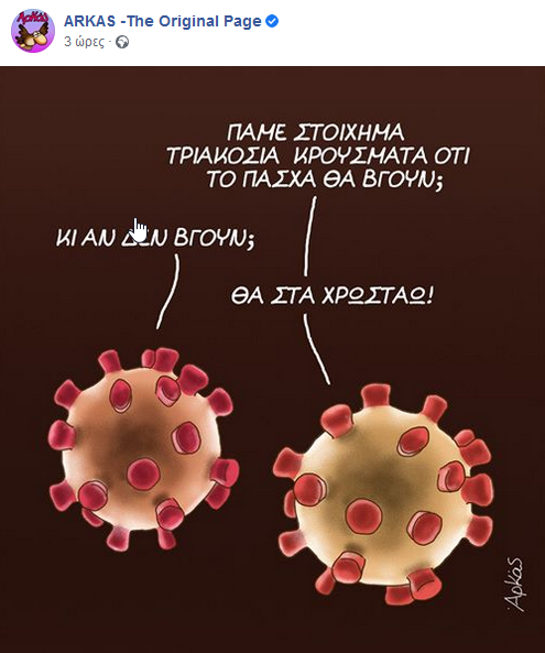 Με αφορμή το Πάσχα και τα μέτρα τα οποία έχει ανακοινώσει η κυβέρνηση, ώστε να περιοριστούν οι μετακινήσεις στο έπακρο, ο γνωστός σκιτσογράφος Αρκάς, έκανε το νέο του «χτύπημα».