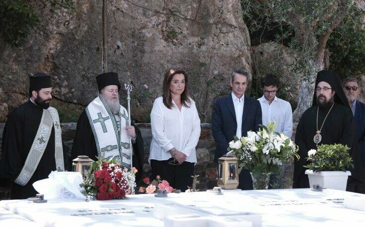 Το τρισάγιο τελέστη σε στενό οικογενειακό κύκλο, παρουσία του Πρωθυπουργού Κυριάκου Μητσοτάκη, της συζύγου του Μαρέβα και του γιου του Κωνσταντίνου, της Ντόρας Μπακογιάννη και του συζύγου της Ισίδωρου Κούβελου.