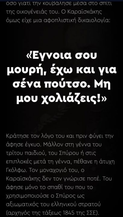 Μετά τον «δικτάτορα Καποδίστρια», η επιτροπή θεώρησε σωστό να αναδείξει την ερωτική ζωή(!) του Καραϊσκάκη, παρουσιάζοντάς τον μάλιστα και ως «τύραννο» απέναντι στις γυναίκες, σε ένα χυδαίο άρθρο που θύμισε κουτσομπολίστικο περιοδικό χαμηλής κυκλοφορίας.
