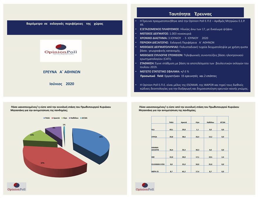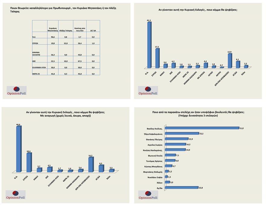 Δημοσκόπηση Opinion Poll: Στο 24% η ΝΔ-ΣΥΡΙΖΑ – Μεγάλη πτώση για το ΚΙΝΑΛ (φωτο)
