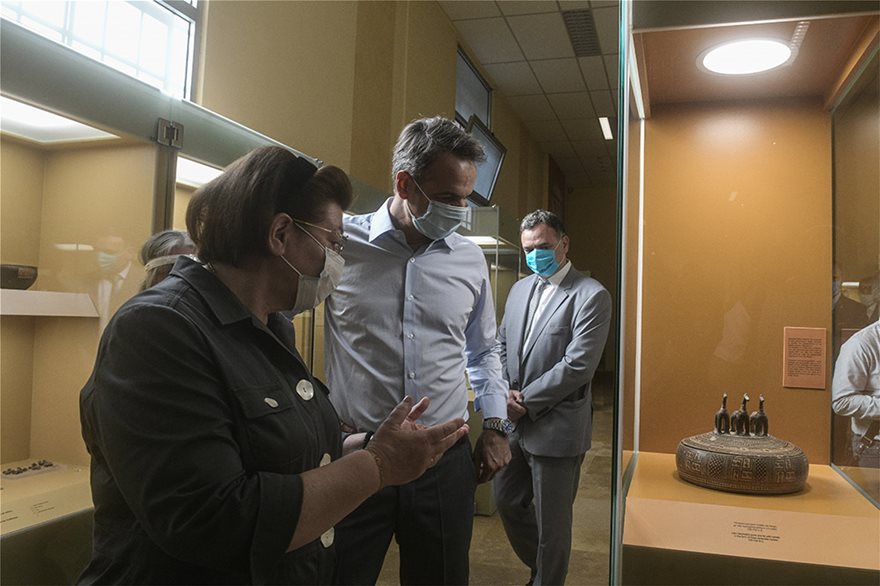Η επίσκεψη του πρωθυπουργού, τον οποίο συνόδευε η υπουργός Πολιτισμού Λίνα Μενδώνη, πραγματοποιείται με αφορμή την επανέναρξη της λειτουργίας όλων των μουσείων της χώρας.