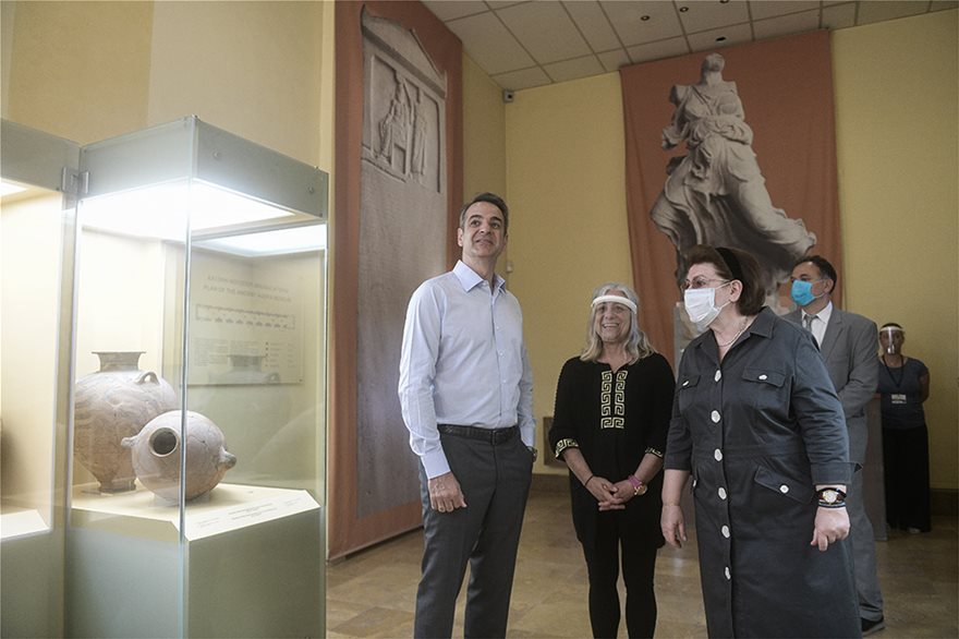 Η επίσκεψη του πρωθυπουργού, τον οποίο συνόδευε η υπουργός Πολιτισμού Λίνα Μενδώνη, πραγματοποιείται με αφορμή την επανέναρξη της λειτουργίας όλων των μουσείων της χώρας.