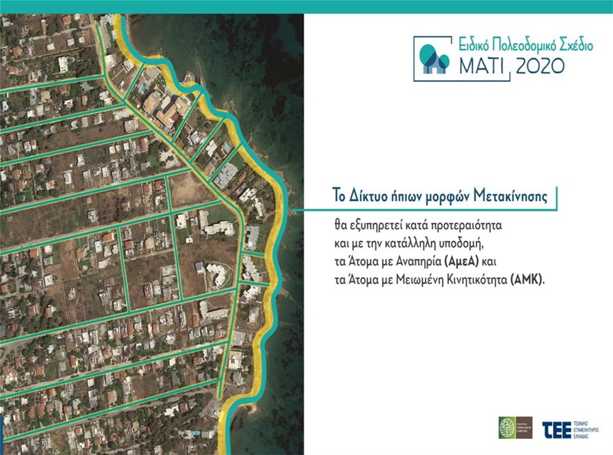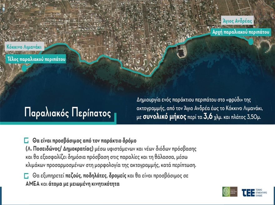 Με τον τρόπο αυτό υλοποιείται ένας σύγχρονος αντιπλημμυρικός σχεδιασμός και εξασφαλίζεται ένας μεγάλος δημόσιος περίπατος κατά μήκος της ακτής, χωρίς εμπόδια, με ελεύθερο πλάτος 35 μ.. Επίσης δημιουργείται ένα δίκτυο βιώσιμης κινητικότητας-οχημάτων (ιδιωτικών και άλλων όπως π.χ. τα πυροσβεστικά ή τα νοσοκομειακά), ποδηλάτων και πεζών.