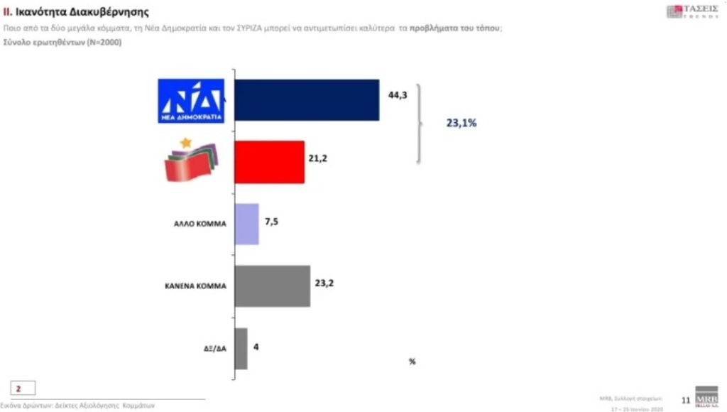 Ικανότητα διακυβέρνησης: Ποιο από τα δύο μεγάλα κόμματα, ΝΔ ή ΣΥΡΙΖΑ, μπορεί να αντιμετωπίσει καλύτερα τα προβλήματα του τόπου;