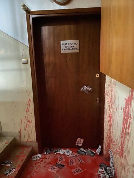 Άγνωστοι, πραγματοποίησαν επίθεση με τρικάκια και μπογιές κατά τη διάρκεια του Σαββατοκύριακου, στο πολιτικό γραφείο της βουλευτή Α’ Θεσσαλονίκης με τη Νέα Δημοκρατία, Άννας Ευθυμίου.