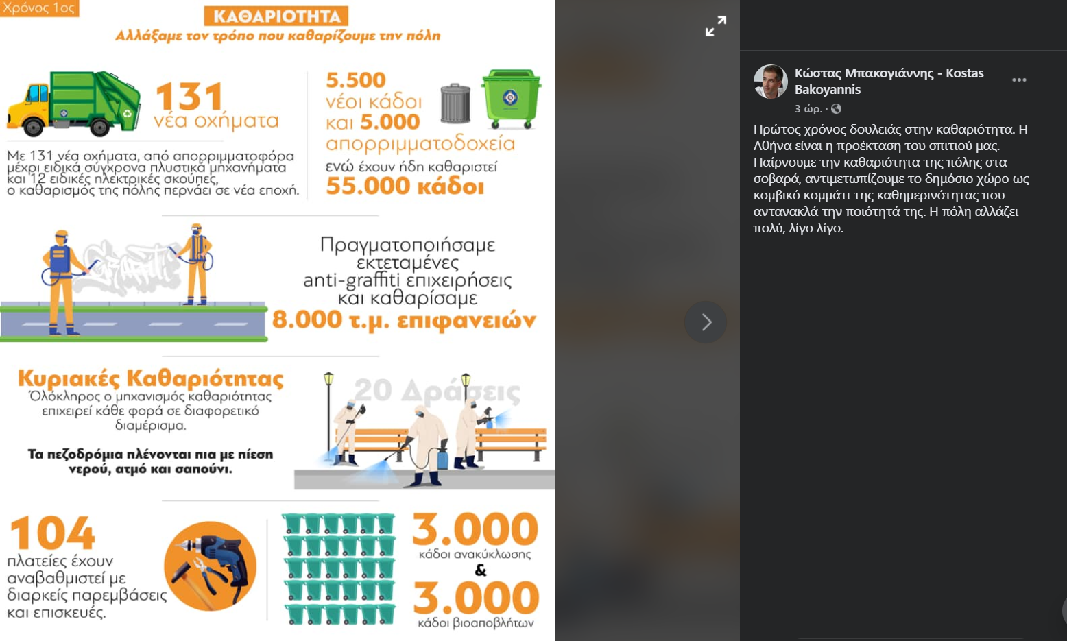Ο δήμαρχος Αθηναίων, Κώστας Μπακογιάννης μέσω ανάρτησης στον προσωπικό του λογαριασμό στάθηκε στην εξαιρετική δουλειά που γίνεται στον κλάδο της καθαριότητας.