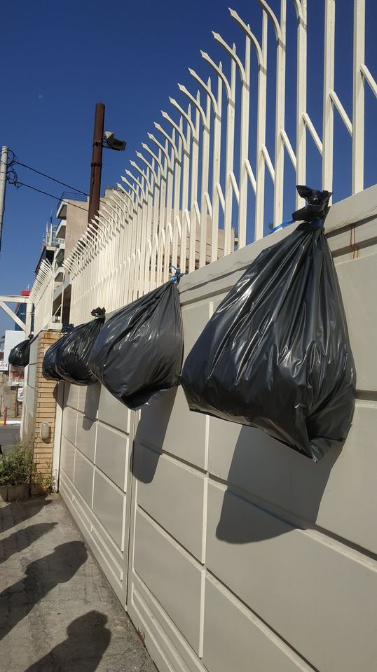 Σε ένδειξη διαμαρτυρίας, η Νεολαία ΣΥΡΙΖΑ κρέμασε μαύρες σακούλες σκουπιδιών στα κάγκελα των εγκαταστάσεων.