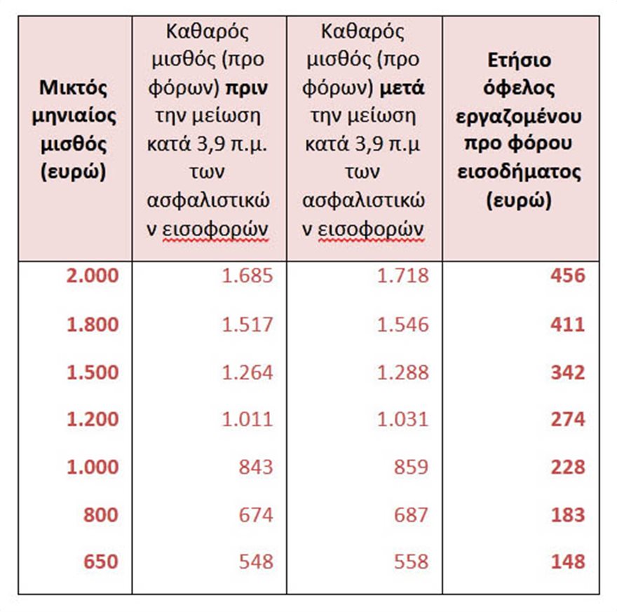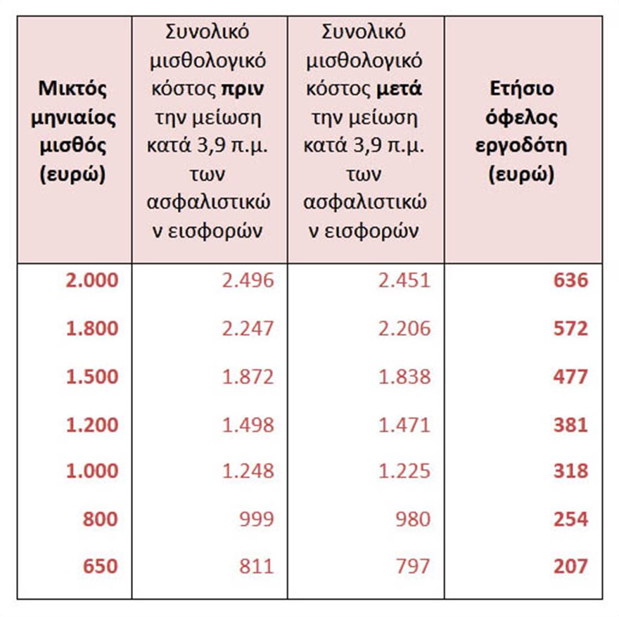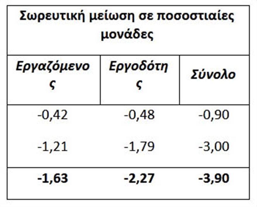 Ενώ η σωρευτική μείωση το 2021 για εργαζόμενο και εργοδότη αποτυπώνεται ως ακολούθως: