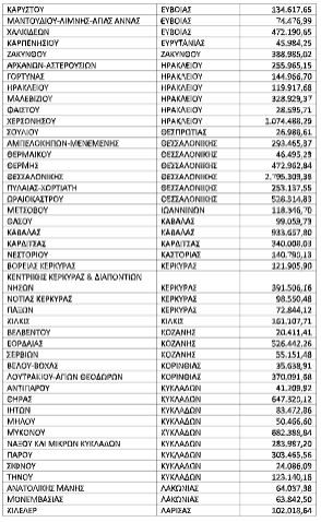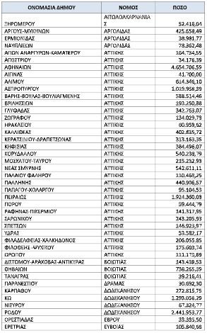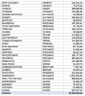Η κατανομή της έκτακτης επιχορήγησης στους 119 Δήμους έχει ως εξής: