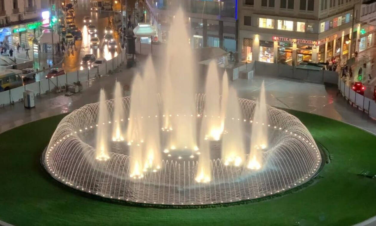 Στα χρώματα της γαλλικής σημαίας το σιντριβάνι της Ομόνοιας (φωτό)