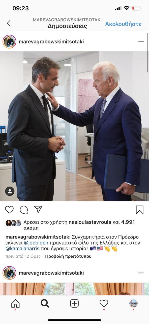 Μια φωτογραφία του πρωθυπουργού με τον νέο πρόεδρο των ΗΠΑ, «έσπευσε» να ανεβάσει η σύζυγος του Κυριάκου Μητσοτάκη, εκφράζοντας τα συγχαρητήρια της στον νέο πλανητάρχη, τον οποίο χαρακτηρίζει «πραγματικό φίλο της Ελλάδας».