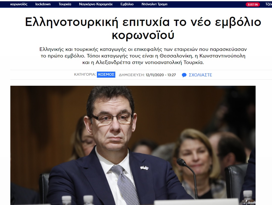 Ευκαιρία δεν αφήνουν κάποιοι να πέσει κάτω, προκειμένου να προωθήσουν την ατζέντα τους. Έτσι καθόλου έκπληξη δεν προκάλεσε το γεγονός ότι στον «ΣΚΑΪ» έφτασαν στο σημείο να παρουσιάζουν ως «ελληνο-τουρκική» επιτυχία το εμβόλιο της Pfizer.