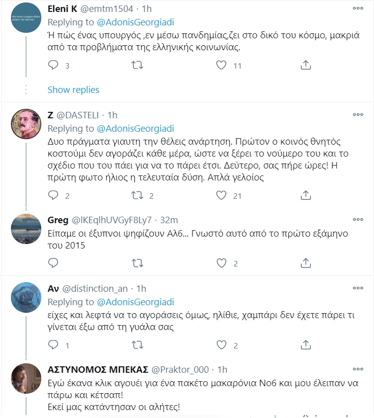 Δείτε μερικές απαντήσεις στο τουίτ του κ.Γεωργιάδη: