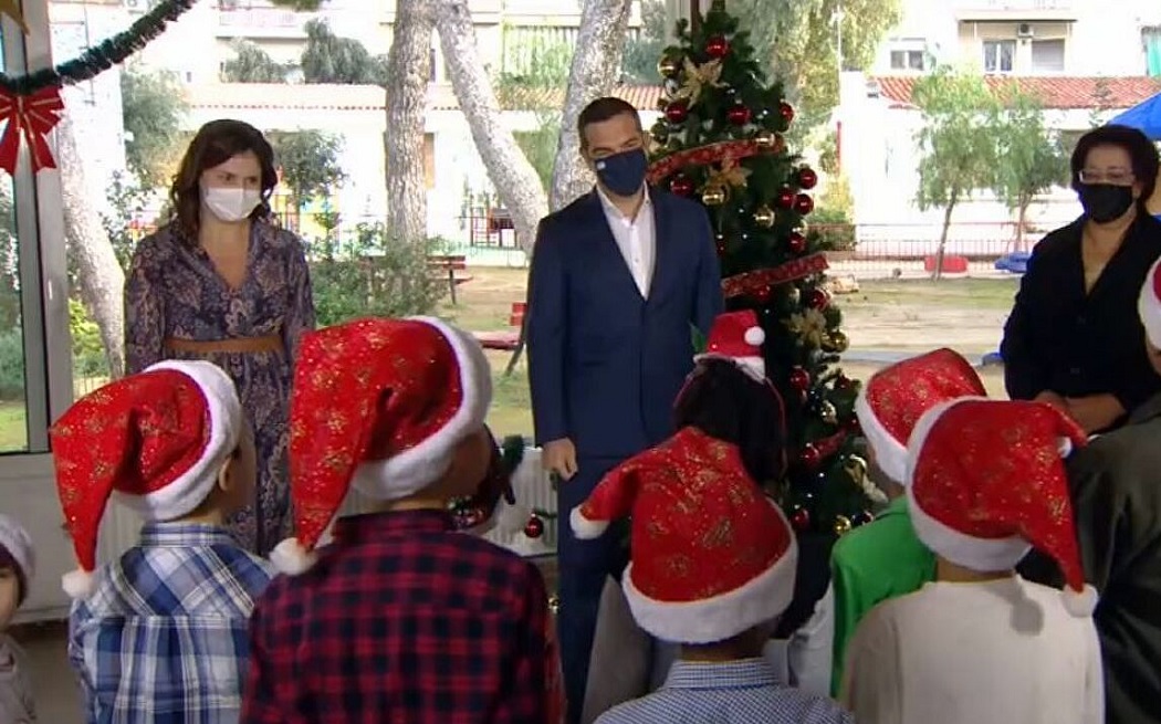 Ο πρόεδρος του ΣΥΡΙΖΑ, Αλέξης Τσίπρας βρέθηκε στις εγκαταστάσεις του Πρότυπου Εθνικού Νηπιοτροφείου όπου άκουσε τα κάλαντα και αντάλλαξε ευχές και δώρα.
