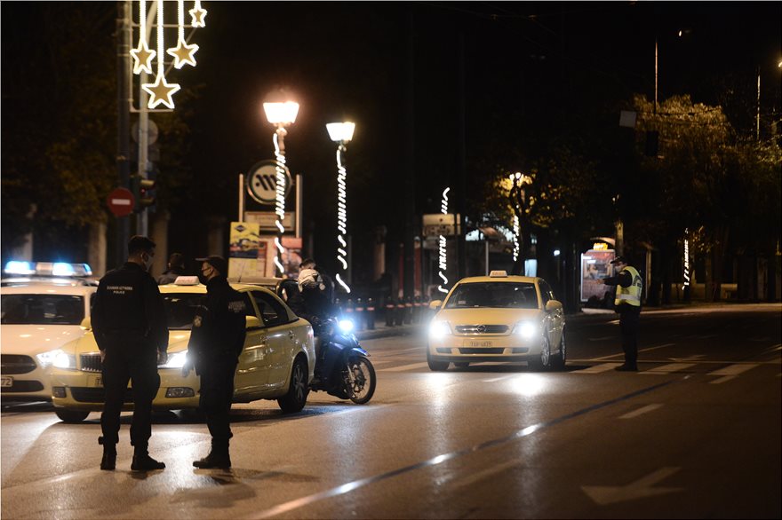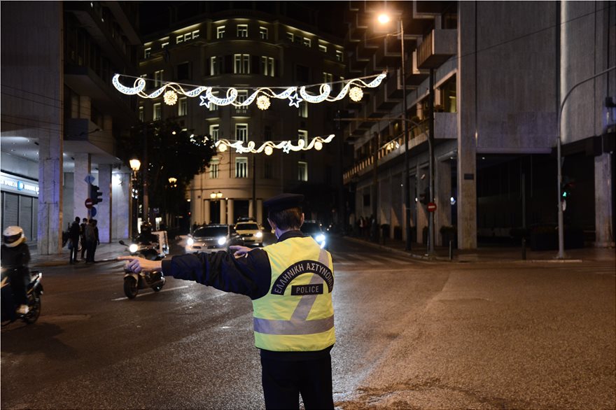 Από την άλλη μεριά η Αθήνα ήταν «έρημη» πόλη από την καθολική απαγόρευση μετά τις 22:00, με σαρωτικούς ελέγχους και μπλόκα στους δρόμους για να μην γιορτάσουν οι πολίτες τον ερχομό του νέου έτους. Οι δυνάμεις ασφαλείας έλεγχαν μέχρι και το διαδίκτυο.