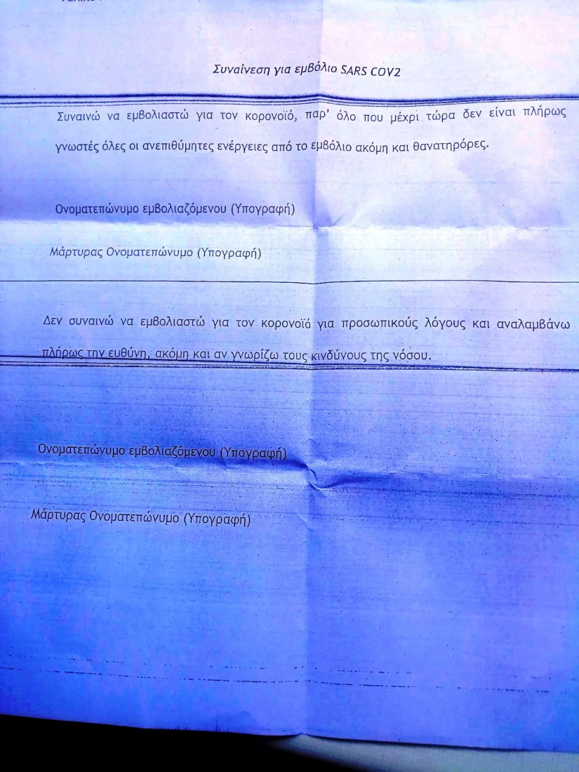 Νωρίτερα η ΠΟΕΔΗ προέβη στην καταγγελία πως στο Νοσοκομείο Καρδίτσας οι εργαζόμενοι καλούνταν να υπογράψουν έντυπο συναίνεσης στον εμβολιασμό τους κατά του κορωνοιου.