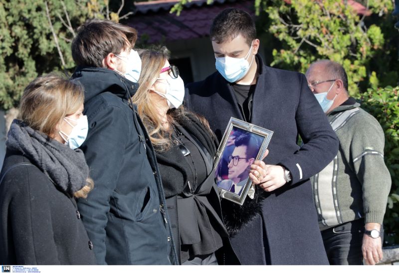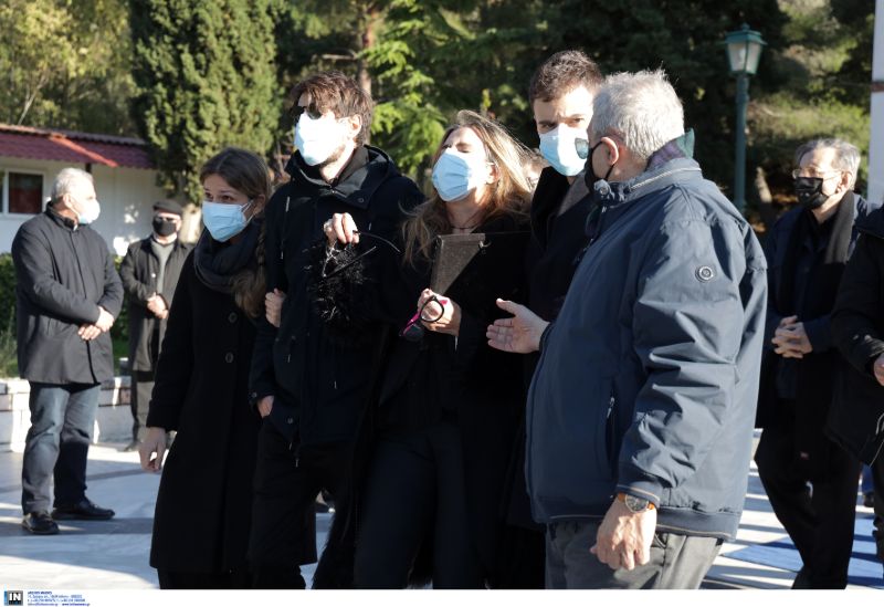 Η σύζυγός του Μίνα Παπαθεοδώρου Βαλυράκη, μαζί με τους δύο γιους τους είπαν το τελευταίο αντίο στον Σήφη Βαλυράκη.