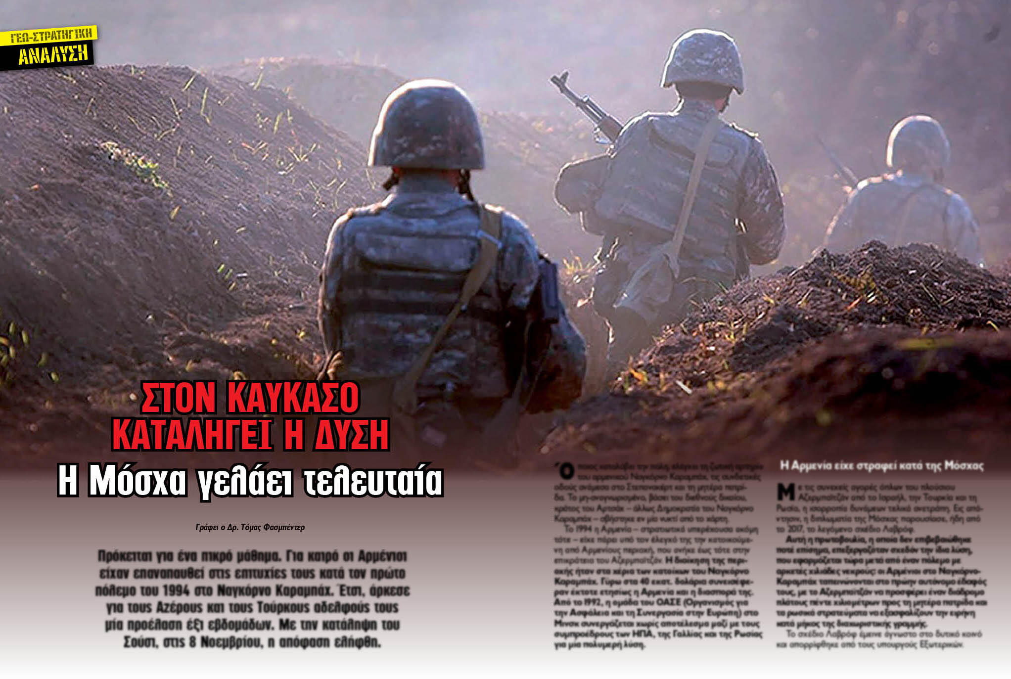 Πρόκειται για ένα πικρό μάθημα. Για καιρό οι Αρμένιοι είχαν επαναπαυθεί στις επιτυχίες τους κατά τον πρώτο πόλεμο του 1994 στο Ναγκόρνο-Καραμπάχ. Έτσι, άρκεσε για τους Αζέρους και τους Τούρκους αδελφούς τους μία προέλαση έξι εβδομάδων. Με την κατάληψη του Σούσι, στις 8 Νοεμβρίου, η απόφαση ελήφθη.