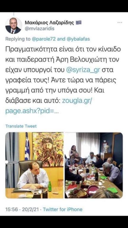 «Πραγματικότητα είναι ότι τον κίναιδο και παιδεραστή Άρη Βελουχιώτη τον είχαν υπουργοί του ΣΥΡΙΖΑ στα γραφεία τους. Άντε τώρα να πάρεις γραμμή από την υπόγα σου!»