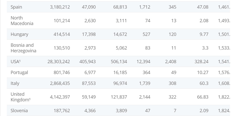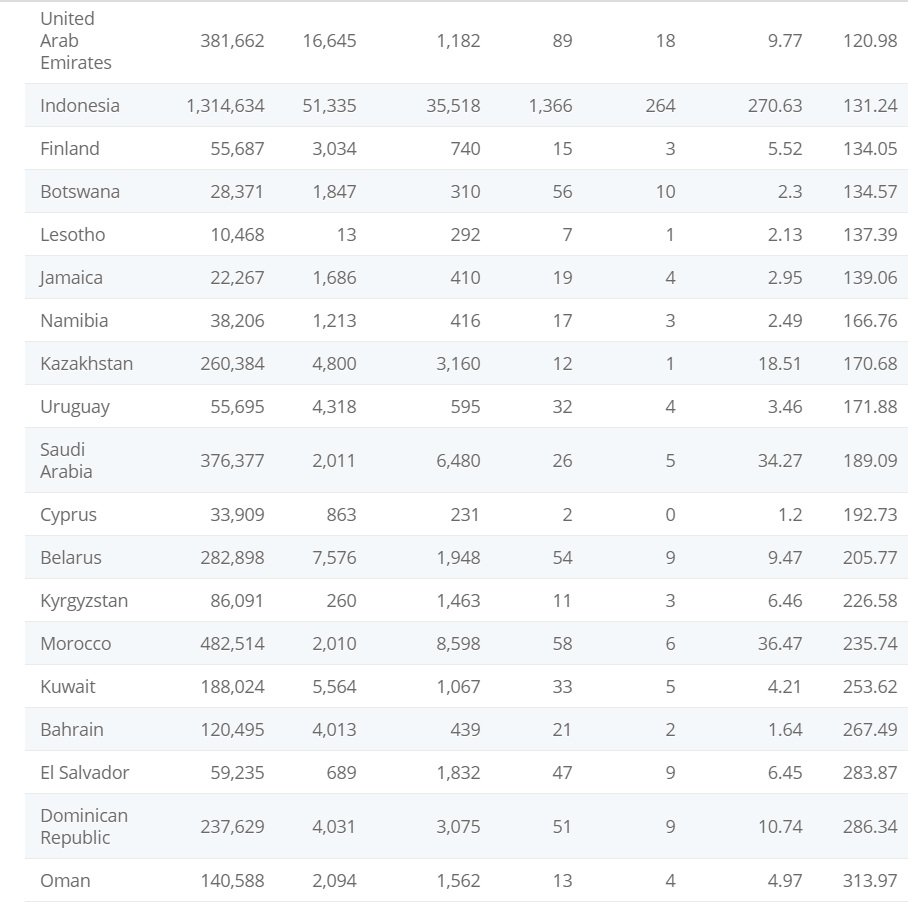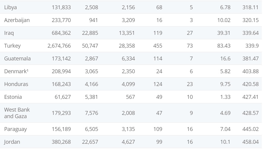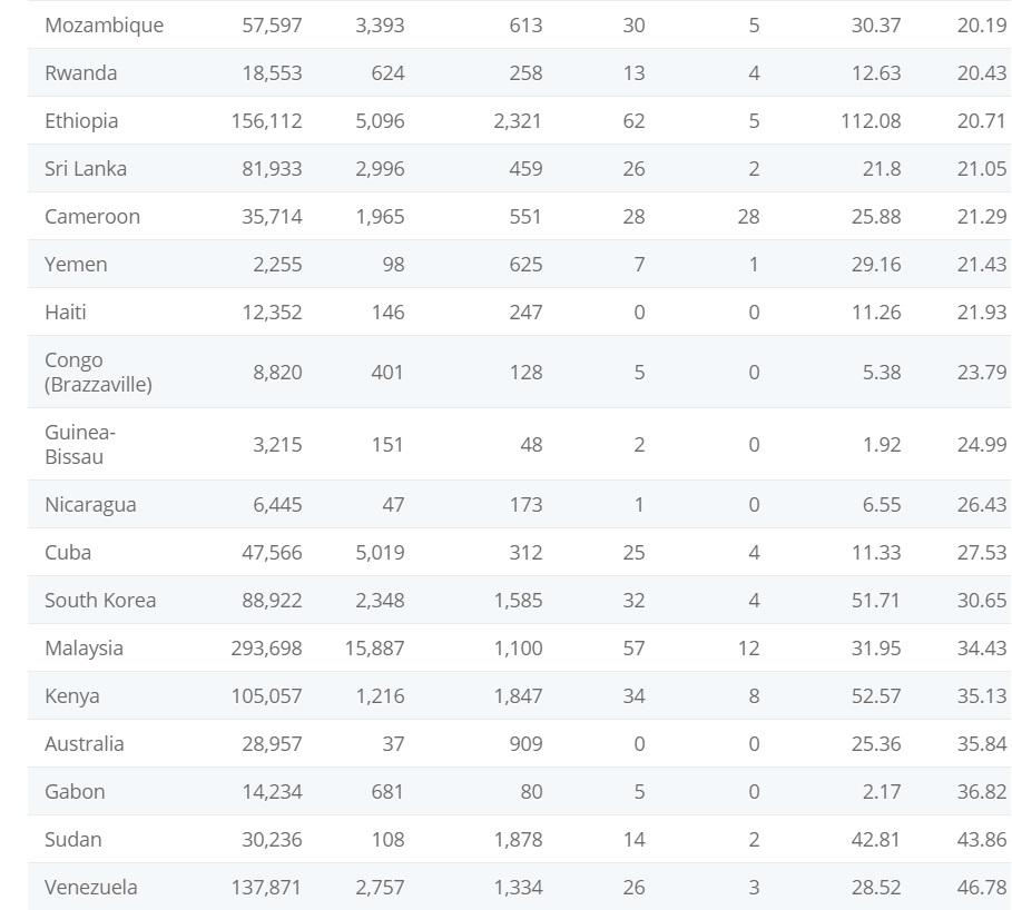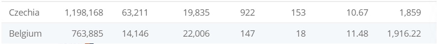 Σε άλλο πίνακα ο οποίος βέβαια αφορά τους συνολικούς θανάτους, και δεν θεωρείται αντιπροσωπευτικός αλλά δίνει μια γενική εικόνα, βρίσκεται στην 160η χειρότερη θέση αναφορικά με τους θανάτους από τον ιό COVID-19, όπως ήταν μέχρι τις 26 Φεβρουαρίου.
