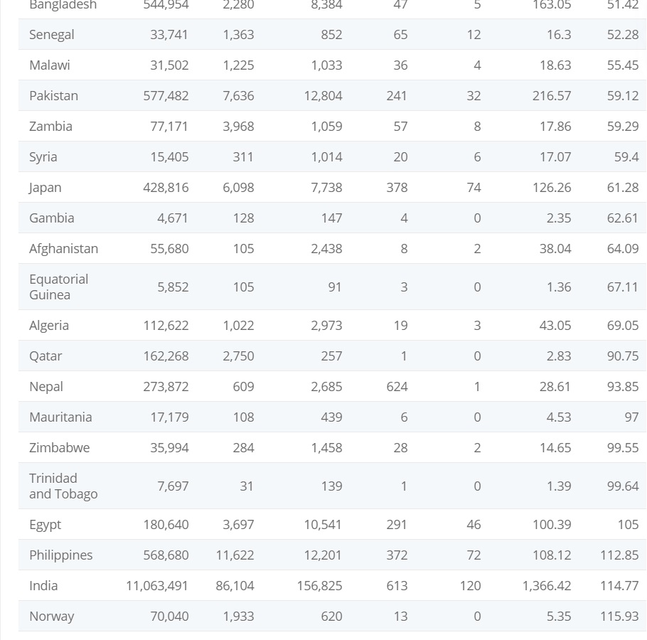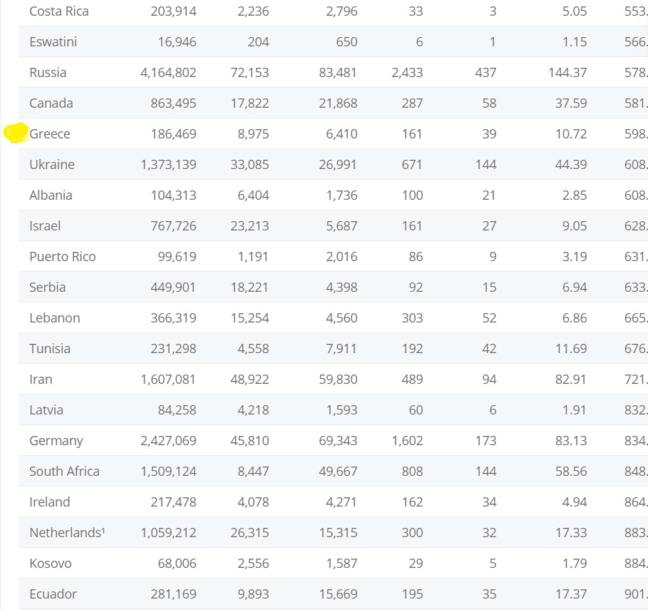 Έτσι και σύμφωνα με το statista.com η Ελλάδα εμφανίζεται στην 105η θέση σε ένα πίνακα για την παγκόσμια κατάταξη των χωρών αναφορικά με τους θανάτους από κορωνοϊό ανά εκατομμύριο κατοίκους.