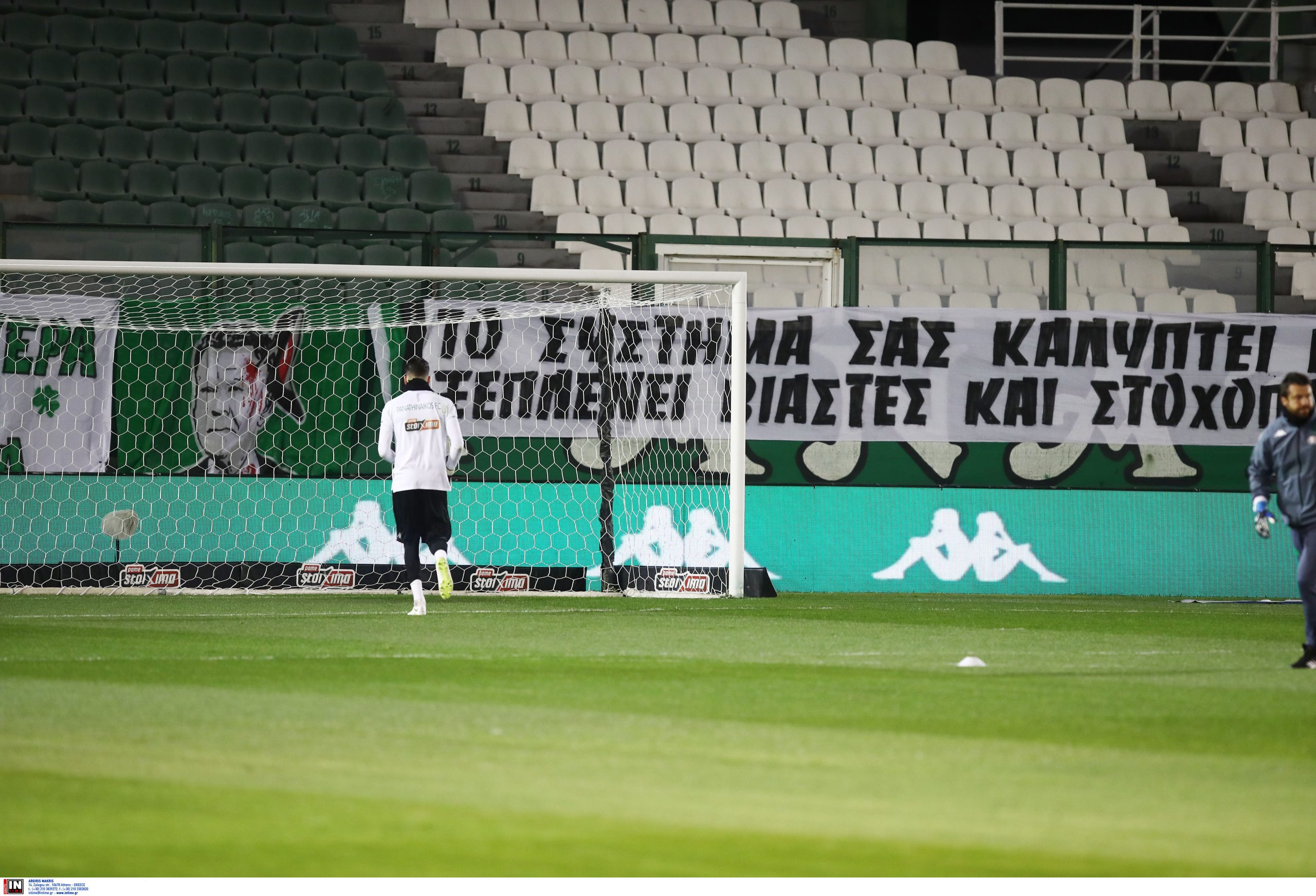 Σε ευθεία επίθεση κατά της κυβέρνησης προχώρησαν φίλαθλοι του Παναθηναϊκού στο γήπεδο της Λεωφόρου, λίγο πριν την έναρξη του ντέρμπι ΠΑΟ-ΑΕΚ που διεξάγεται αυτή την ώρα για την 24η αγωνιστική της Α΄Εθνικής.