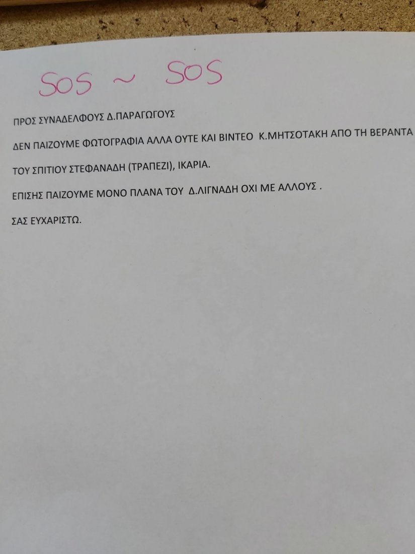 Ως προς το χαρτί που αναρτήθηκε στο γραφείο των Παραγωγών, και κατόπιν των αναφορών από τους συναδέλφους που εργάστηκαν το Σαββατοκύριακο 6 και 7 Φεβρουάριου 2021, θα ήθελα να σας ενημερώσω ότι πρόκειται για ένα ανυπόγραφο κείμενο με δήθεν οδηγίες που άλλωστε ουδέποτε εφαρμόστηκαν, όπως φάνηκε και στην πράξη.