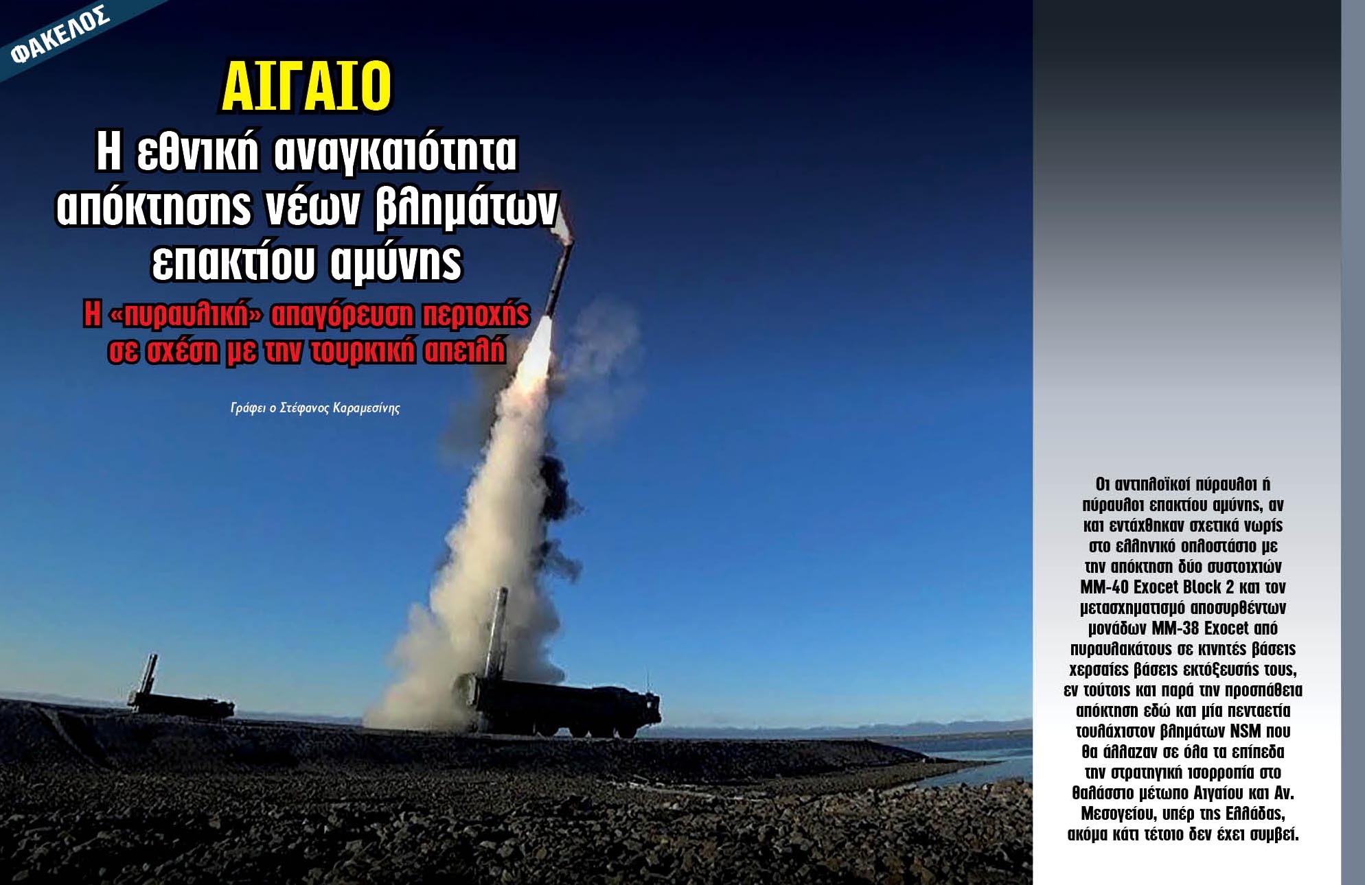 ΑΙΓΑΙΟ: Η εθνική αναγκαιότητα απόκτησης νέων βλημάτων επακτίου αμύνης – Η «πυραυλική» απαγόρευση περιοχής σε σχέση με την τουρκική απειλή