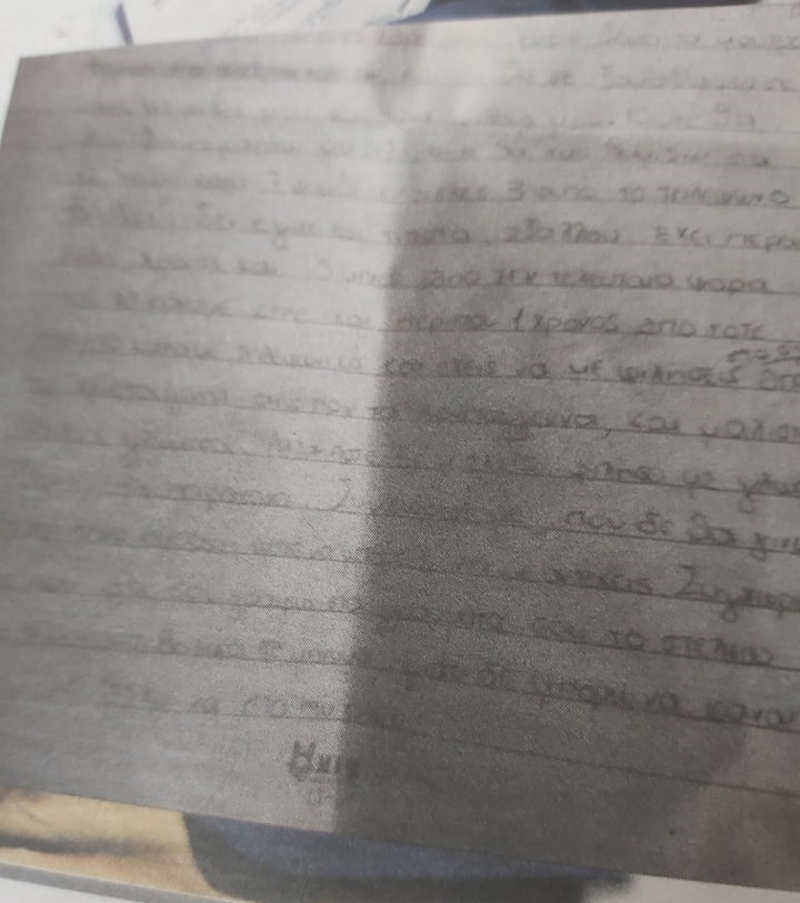 Σε ένα άλλο γράμμα ο τρόπος που γράφει ο αποστολέας – αναφέρει η εφημερίδα “Μπαμ”, δείχνει παιδικός ενώ μοιάζει να είναι γραμμένο σε σελίδα σχολικού τετραδίου…