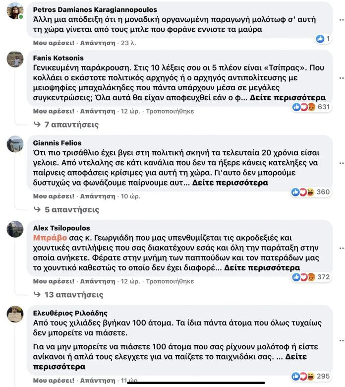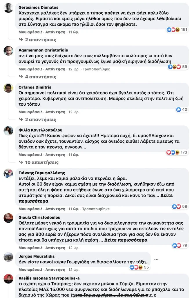 Αυτό που ακολούθησε δεν πρέπει να το φανταζόταν ο υπουργός. Παραθέτουμε ενδεικτικά τα σχόλια, χωρίς επιλογή, όπως ακριβώς εμφανίζονται κάτω από την ανάρτηση του υπουργού στο facebook. Τις τρεις πρώτες σελίδες τουλάχιστον, γιατί τα σχόλια είναι κυριολεκτικά χιλιάδες.