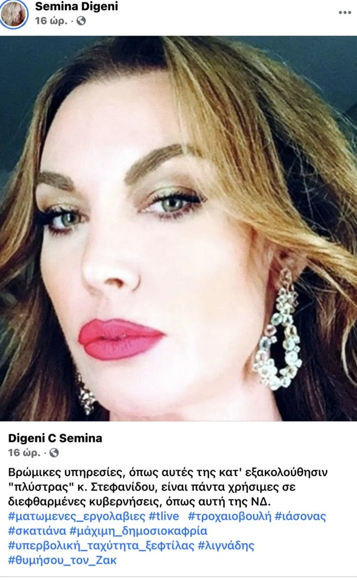 Σκληρή ανάρτηση από την Σεμίνα Διγενή για την Τατιάνα Στεφανίδου – «Είναι ”πλύστρα”» (φωτο)