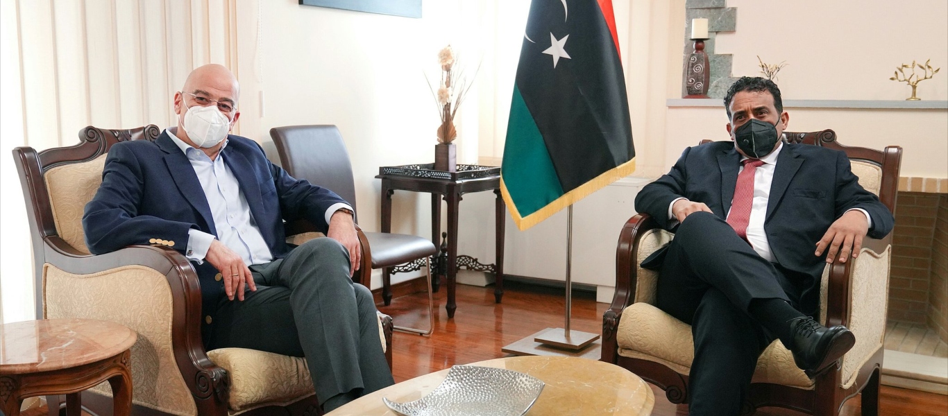 Το πρωί του Σαββάτου ο Έλληνας ΥΠΕΞ είχε συνάντηση με τον Πρόεδρο του Προεδρικού Συμβουλίου της Λιβύης Μοχάμεντ Μενφί, ο οποίος βρίσκεται στη χώρα μας τις τελευταίες ημέρες, μετά από πρόσκληση της ΠτΔ Κατερίνας Σακελλαροπούλου.
