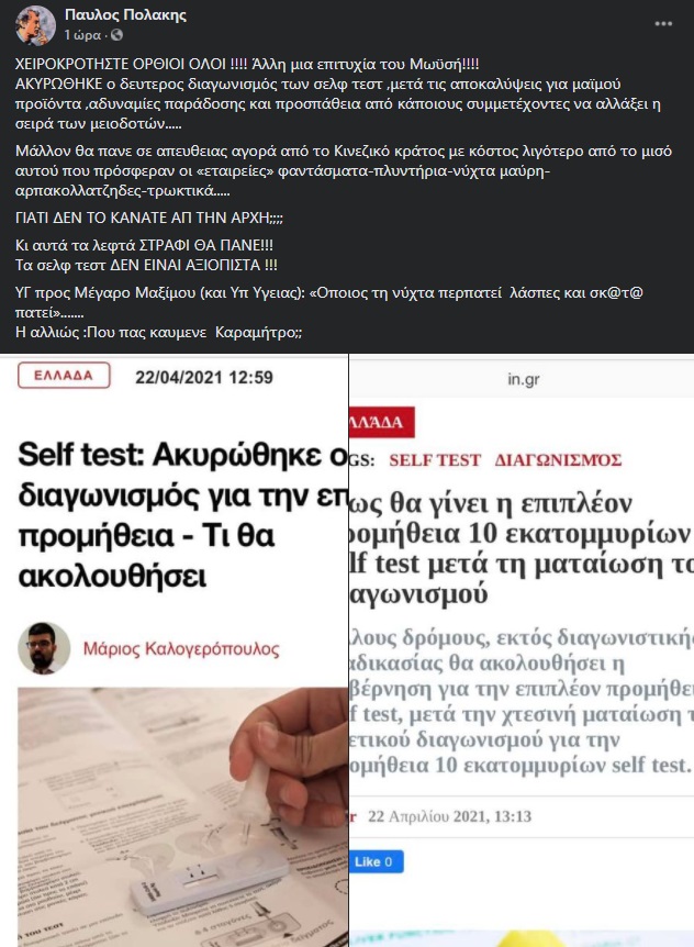 Ο Παύλος Πολάκης με αφορμή την ακύρωση του δεύτερου διαγωνισμού των self-test, αναφέρθηκε σε ακόμη μία αποτυχία της κυβέρνησης.